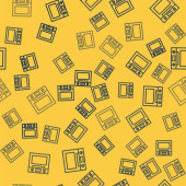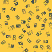 Niebieska linia Retro audio kaseta magnetofonowa ikona izolowane bezszwowy wzór na żółtym tle. Ilustracja wektora.