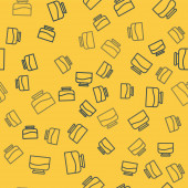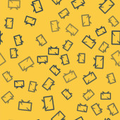 Niebieska linia Toster z toastami ikona odizolowany bezszwowy wzór na żółtym tle. Wektor.
