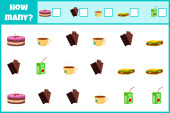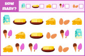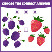 Edukacyjna gra matematyczna. Policz liczbę owoców. Policz jak owoce człowieka. Liczenie gry dla dzieci.