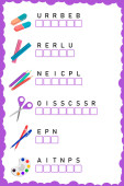 Ułóż litery we właściwej kolejności. Arkusz roboczy dla edukacji. Logiczna gra edukacyjna. Praktyka w przedszkolu, podstawówce i gimnazjum. Logika zabawy puzzle arkusz aktywności.