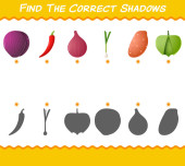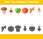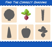 Gra edukacyjna dla dzieci. Znajdź właściwy cień. Zestaw warzyw. Mini-gra dla dzieci.