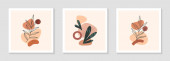 Streszczenie boho kwiatowa linia sztuki wektor pozostawia tło. Ręcznie rysować liście i tło kwiat sztuki dla mediów społecznościowych, okładka, futerał, tkaniny, wystrój wnętrz.