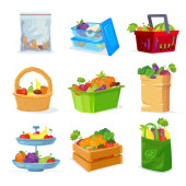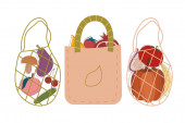 Torba na zakupy z produktami płaski wektor ilustracji. Ilustracja zdrowego odżywiania.