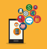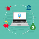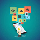 płaski ilustracji wektorowych chmura usługi i urządzenia przenośnego. zarządzania i kontroli
