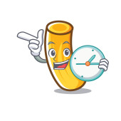 maskotka design styl cyny kukurydzy stojącej z trzymaniem zegara