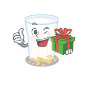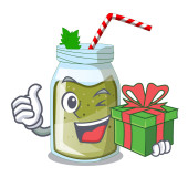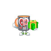 radosna postać z cyny kukurydzy z dużym pudełkiem prezentów