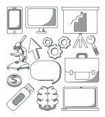 dostawa biurowa materiały biurowe biznes liniowy styl ikony zestaw