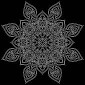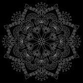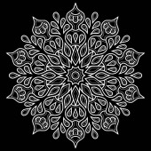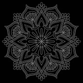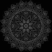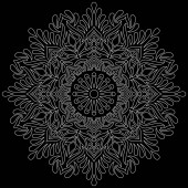 Biały zarys mandali na czarnych bazgrołach szkic dobry nastrój