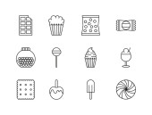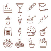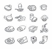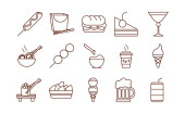 fast food obiad i menu, smaczny posiłek i niezdrowe, ikony obiad restauracja ustawić linię i wypełnić styl