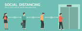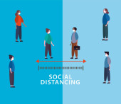 grupa osób noszących maski medyczne ćwiczących dystans społeczny