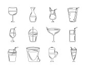 fast food obiad i menu, smaczny posiłek i niezdrowe, ikony obiad restauracja ustawić linię i wypełnić styl