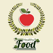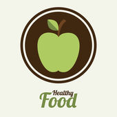 plakat premium i zdrowej żywności z jabłkiem i sztućcami