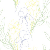 Dekoracyjny ręcznie rysowane żonkil i kwiaty tęczówki, elementy projektu. Może być stosowany do kart, zaproszeń, banerów, plakatów, druku. Ciągły styl sztuki linii