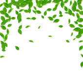 Spadające zielone liście. Świeża herbata losowe liście flyi