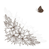 Ręcznie rysowane wiązanki z lilii kwiaty i latający motyl odizolowany na czystym tle. Wektor monochromatyczna elegancka kompozycja kwiatowa w stylu vintage, projekt tatuażu, strona kolorowanki.
