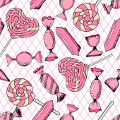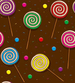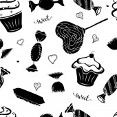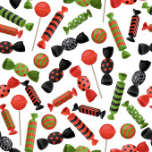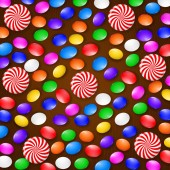 Płynne tło wzór z różnych jasnych słodyczy. Ilustracja wektorowa tkaniny i papieru.