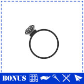 Ikona diamentowego pierścienia płaska. Prosty symbol wektora i ikona bonusu