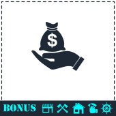 Ikona toreb z pieniędzmi. Prosty symbol wektora i ikona bonusu