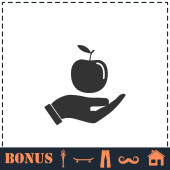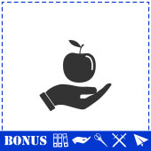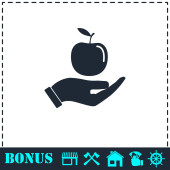 Jabłko w ręku ikona płaska. Prosty symbol wektora i ikona bonusu