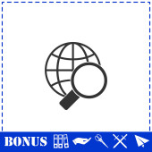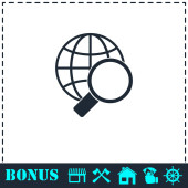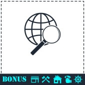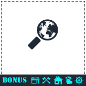 Powiększ ikonę kuli ziemskiej. Prosty symbol wektora i ikona bonusu