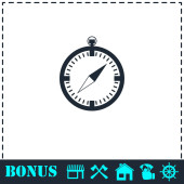 Ikona kompasu płaska. Prosty symbol wektora i ikona bonusu