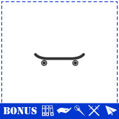Ikona deskorolki płaska. Prosty symbol wektora i ikona bonusu