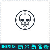 Ikona czaszki snajpera płaska. Prosty symbol wektora i ikona bonusu