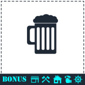 Płaska ikona piwa. Prosty symbol wektora i ikona bonusu