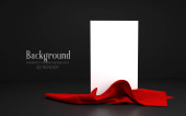 Pionowy biały stojak ze złotą tkaniną odizolowany na czarnym tle. Baner, szablon prezentacji, reklamy. Ilustracja 3d