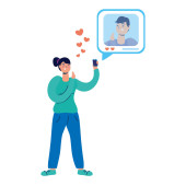Mężczyzna w smartfonie z podobnym i nielubianym projektem wektora serca