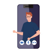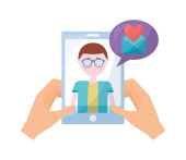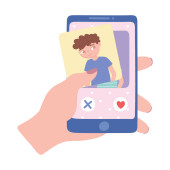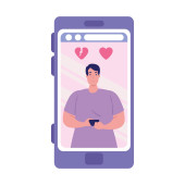 Mężczyzna w smartfonie z podobnym i nielubianym projektem wektora serca