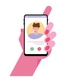 Ręczne trzymanie smartfona z kobietą i czat Bubble wektor projektu