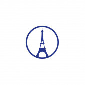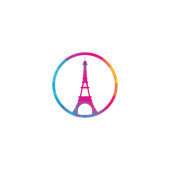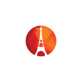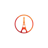 Logo podróży Francji. Wieża Eiffla w Paryżu z płaszczyzną do projektowania logo podróży