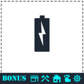Ikona ładowania baterii płaska. Prosty symbol wektora i ikona bonusu