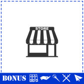 Płaska ikona sklepu. Prosty symbol wektora i ikona bonusu