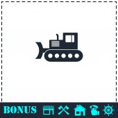 Ikona buldożera płaska. Prosty symbol wektora i ikona bonusu