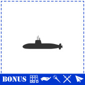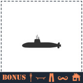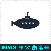 Ikona łodzi podwodnej płaska. Prosty symbol wektora i ikona bonusu