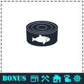 Puszka z ikoną tuńczyka etykiety płaskie. Prosty symbol wektora i ikona bonusu