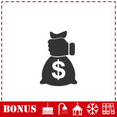 Ręcznie dając torbę pieniędzy do innego mieszkania ikony strony. Prosty symbol wektora i ikona bonusu