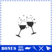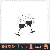 Dwie szklanki szampana na płasko. Prosty symbol wektora i ikona bonusu