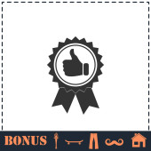 Wstążka banerowa Kciuk w górę ikona płaska. Prosty symbol wektora i ikona bonusu