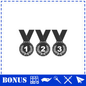 Zestaw złotych srebrnych brązowych medali ikona płaska. Prosty symbol wektora i ikona bonusu