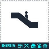 Ikona schodów ruchomych płaska. Prosty symbol wektora i ikona bonusu