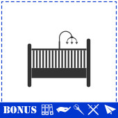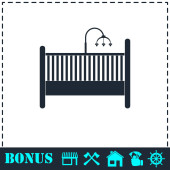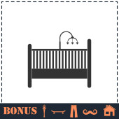Ikona łóżeczka dziecięcego płaska. Prosty symbol wektora i ikona bonusu