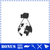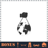 Globus z ikoną dłoni płaski. Prosty symbol wektora i ikona bonusu