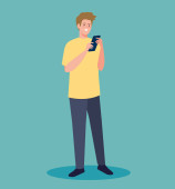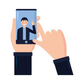 Ręczne trzymanie smartfona z mężczyzną w projekcie wektora czatu wideo
