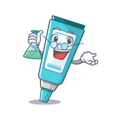 Super genialny profesor antyseptycznej postaci Caricature pracującej w laboratorium. Ilustracja wektora