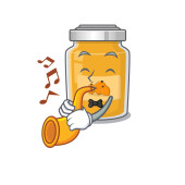 Tabletki lek butelka muzyk z kreskówek obraz gra na trąbce na scenie