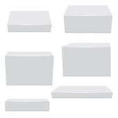 Realistyczne kartonowe pudełka na opakowania makieta. Wektor