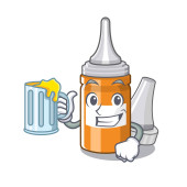 Koncepcja kreskówki pigułki butelka tosty z kieliszkiem piwa